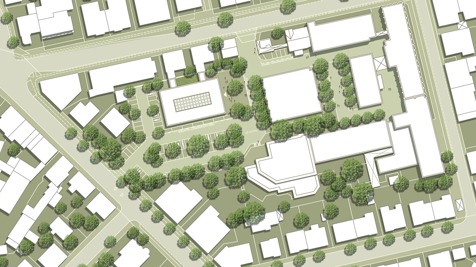Die Berufsbildende Schule V an der Kastanienallee soll erweitert werden. Städtebauliche Idee des Entwurfs ist es, die vorhandenen Qualitäten der campusartigen Struktur aufzunehmen und fortzuführen. Gleichzeitig soll die derzeit undefinierte ’Rückseitenlage’ der angrenzenden Nachbarbebauung aufgehoben und hiermit auch die Park- und Verkehrsflächen eindeutig geordnet werden. Hierzu wird ein zweigeschossiges Pavillion-Gebäude entwickelt und an die vorhandene Grenzbebauung angeschlossen. Es wird ein neuer Häuserblock mit klaren Vorder- und Rückseiten gebildet.