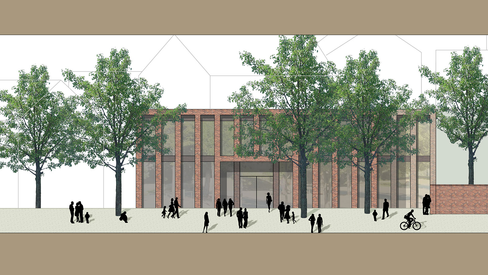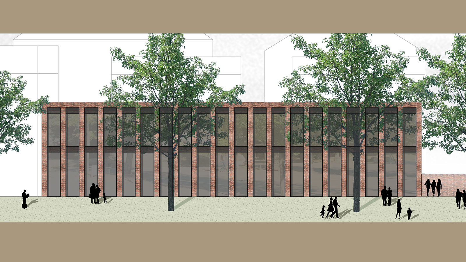 Architektonisch zitiert der Erweiterungsbau die vorhandenen Materialität und Vertikalität der Bestandgebäude und erreicht über die durchgehend zweigeschossige Fassadenstruktur die gewünschte Maßstäblichkeit.