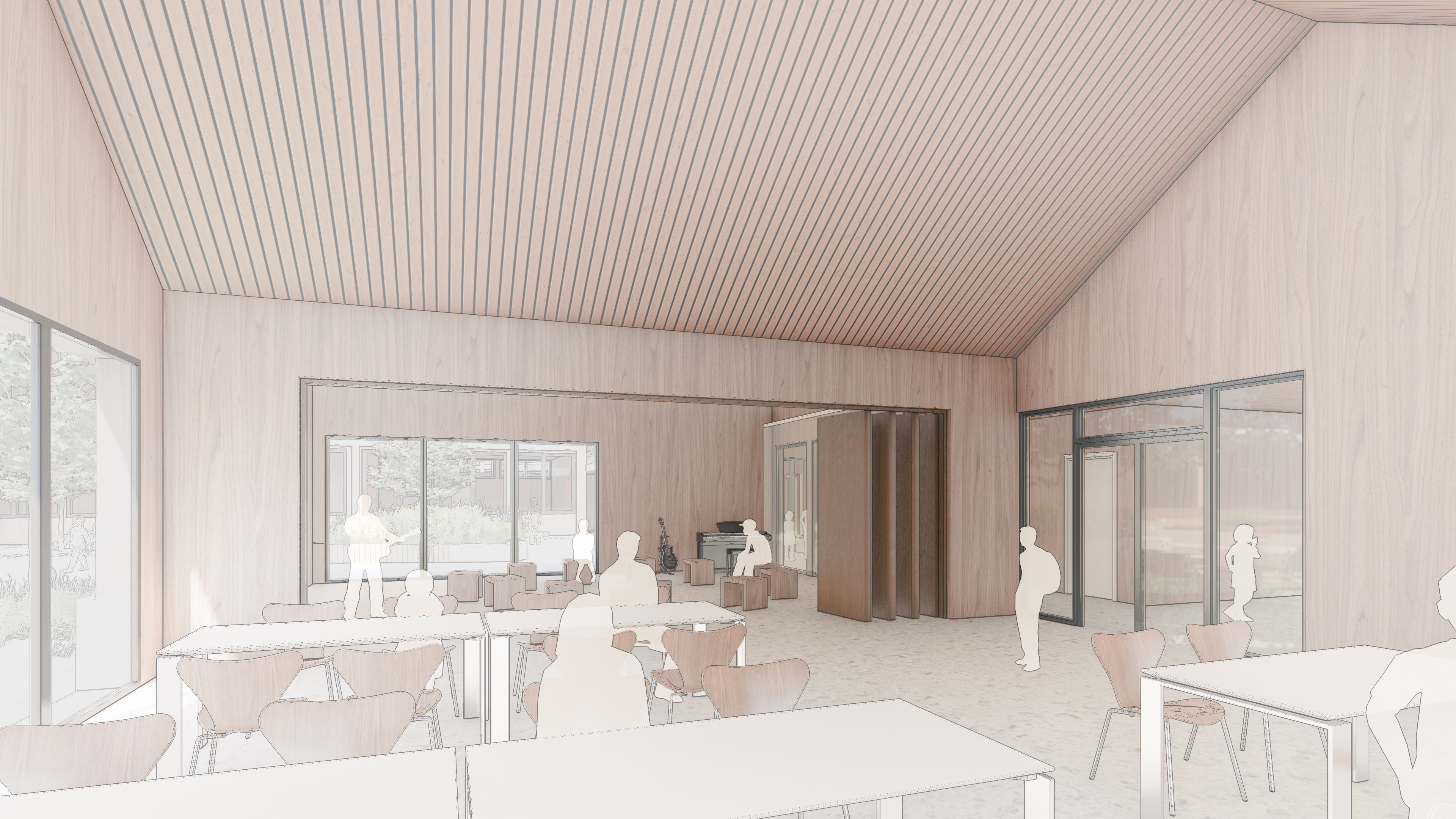 Raumangebote sollen die Schule zukunftssicher und gut vorbereitet für die Ganztagesbetreuung aufstellen. Ziel des Entwurfes ist es