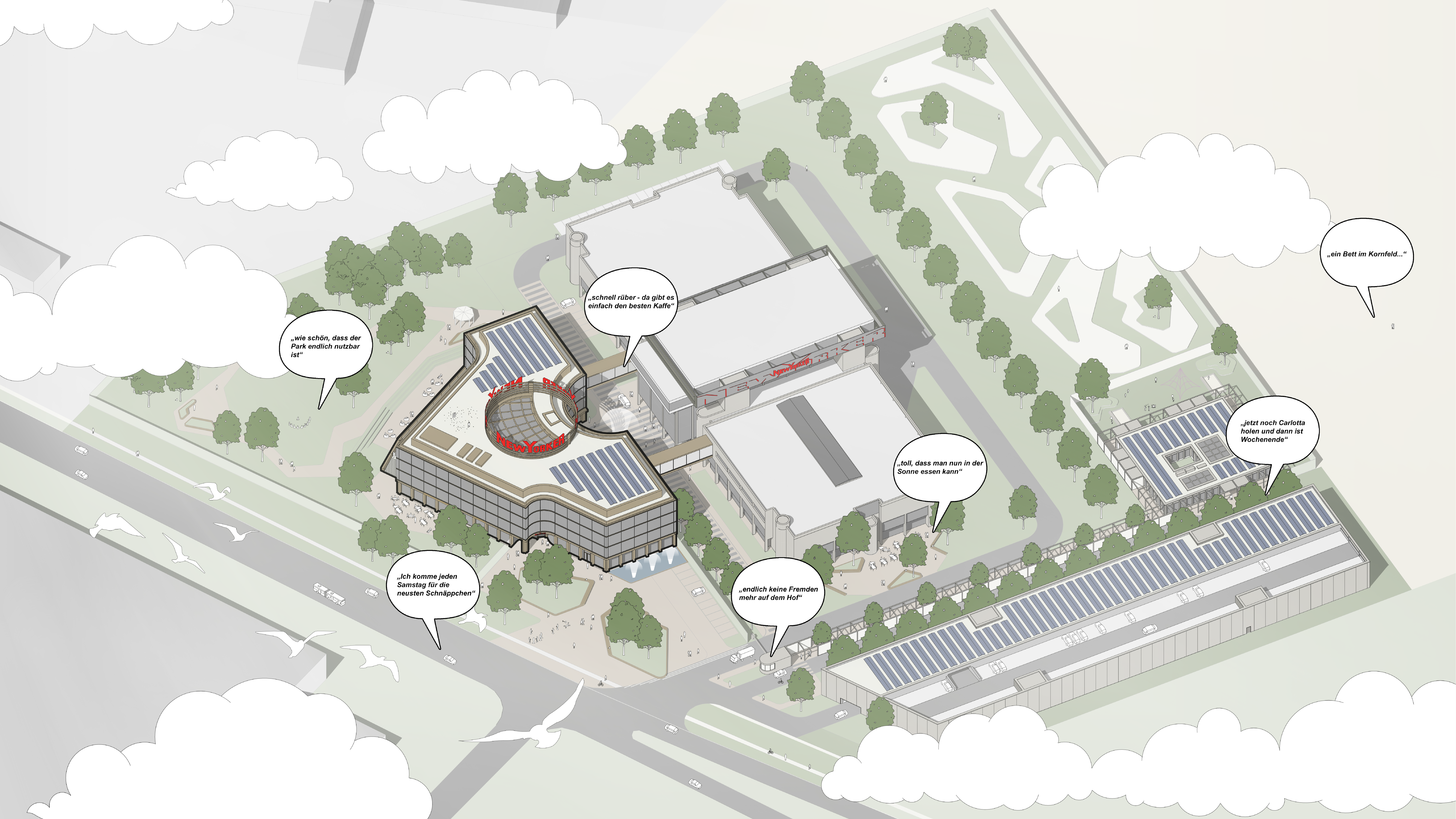 Bestandsgebäude und nutzt die bestehende Vorfahrtsituation als gemeinsame straßenübergreifende interne Eingangsgeste. Durch einen