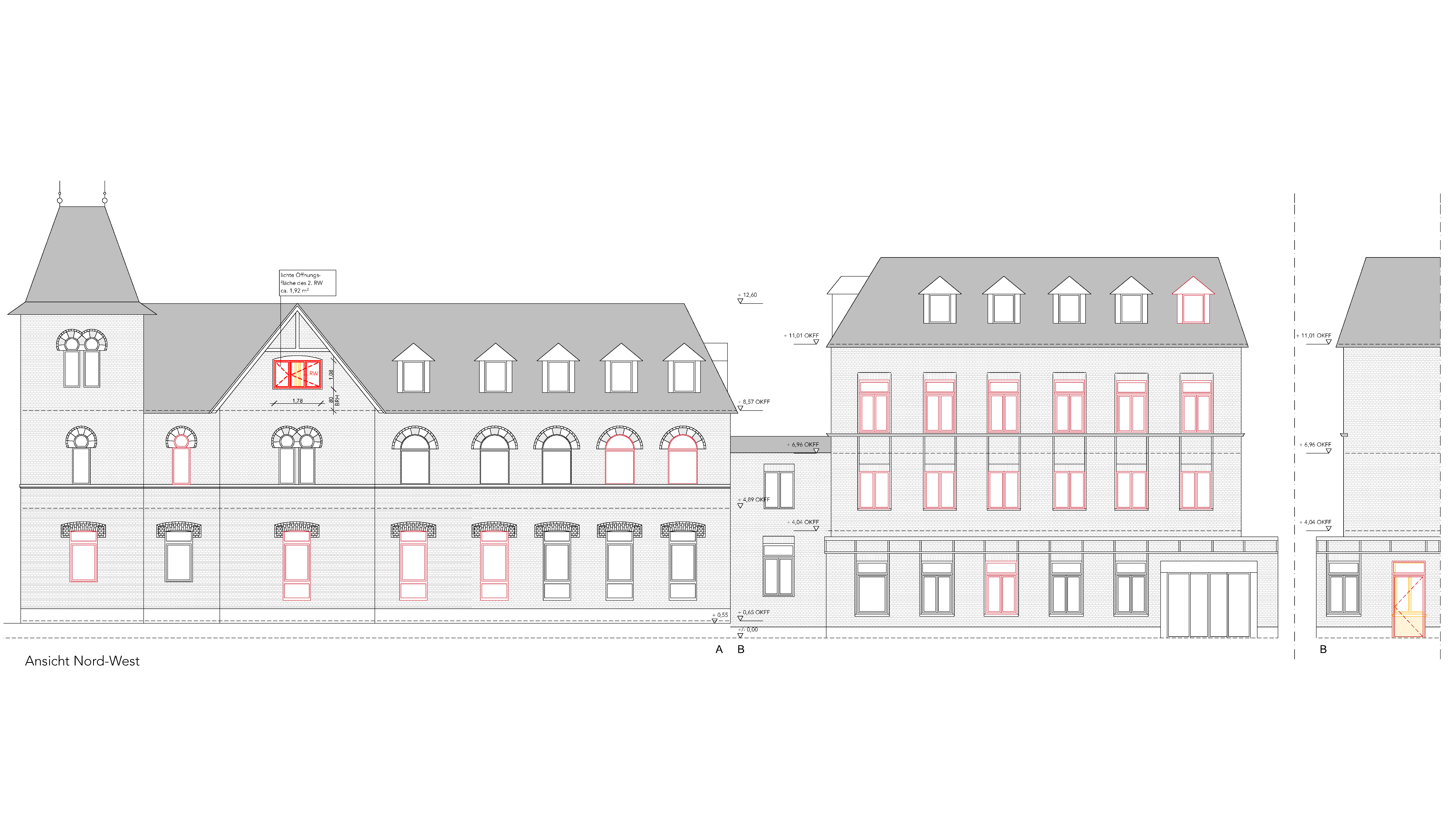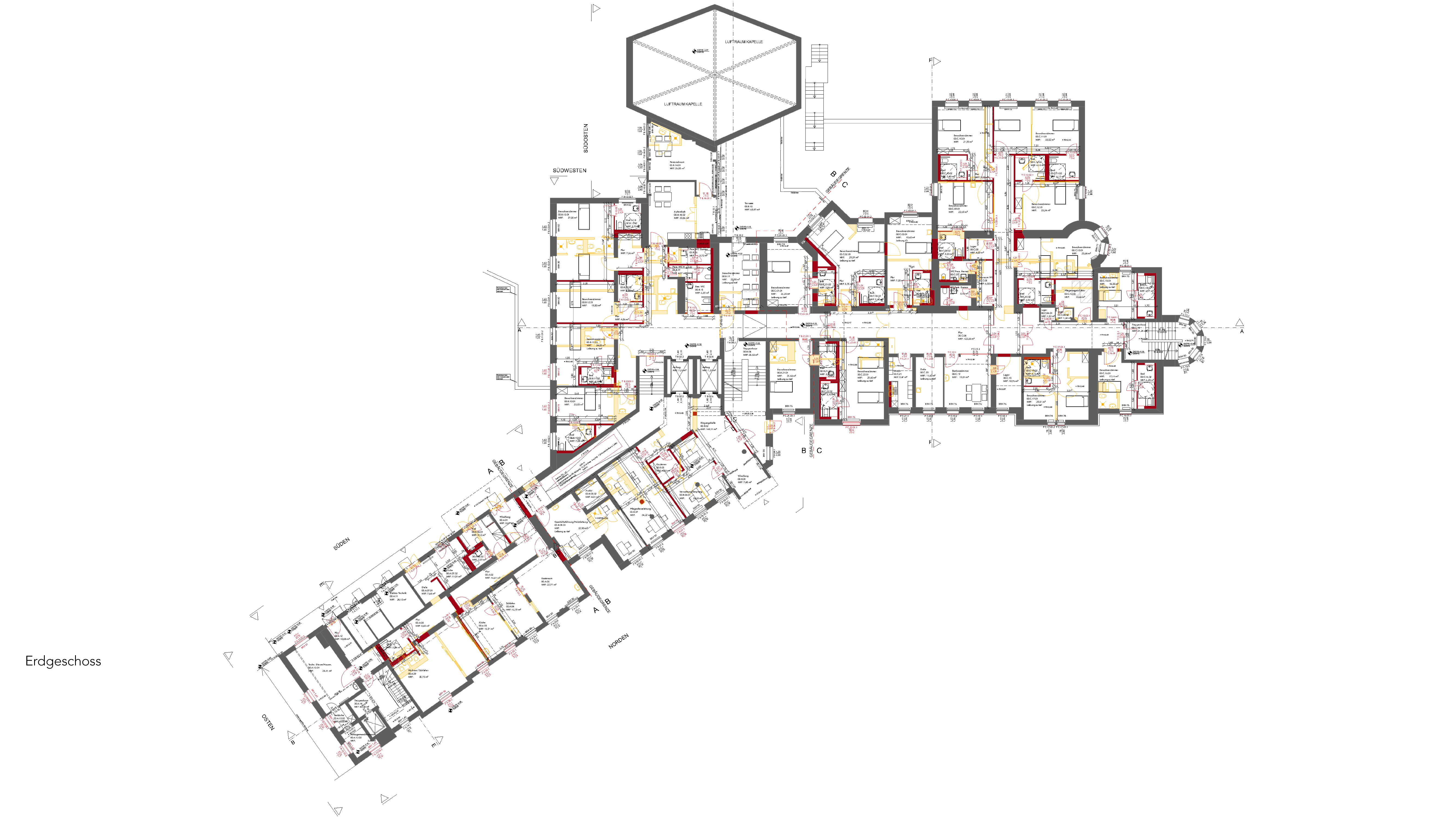 Barrierefreiheit herzustellen. Weiterhin wurden frühere OP-, Großküchen- und Technikbereiche aus und umgebaut. Im Inneren wurde Wert