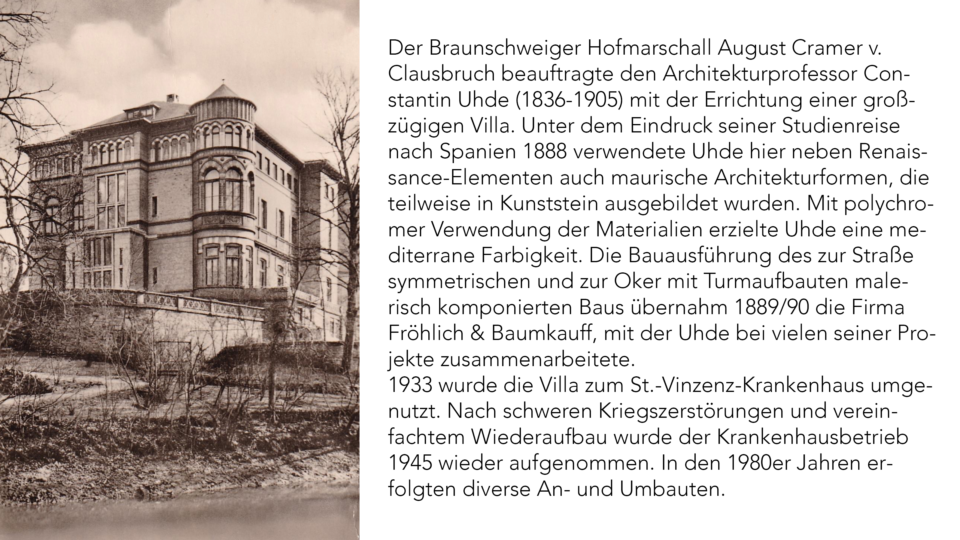 wurde die Villa zum St.-Vinzenz-Krankenhaus umgenutzt. Nach Kriegszerstörungen und einem vereinfachten Wiederaufbau im Inneren